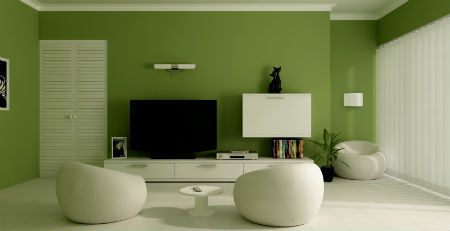 Если в планах окрасить стены в зеленый тон, тогда мебель лучше подобрать нейтральных оттенков, таким образом, зеленый цвет в интерьере будет явным, но ненавязчивым.