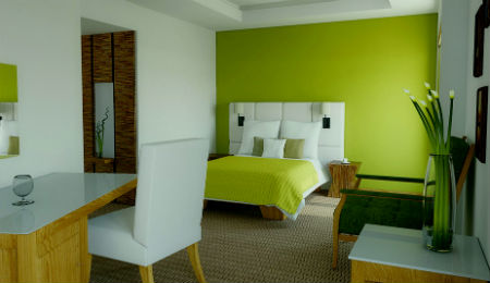 Интерьер в зеленых тонах, должен оформляться с учетом расположения помещения, к примеру, если окна спальни смотрят на южную, жаркую, солнечную сторону, то лучше предпочесть прохладные зеленые тона (сине-зеленый, зелено-голубой). Если же окна смотрят на север, то оттенки стен должны быть мягче и теплее (зелено-желтый, горчичный, оливковый, лайм).