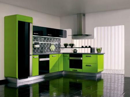 Яркий, интенсивный зеленый цвет в интерьере кухни будет очень уместен, так как именно данный цвет способен держать организм человека в тонусе, что будет особенно явно ощущаться по утрам, когда многие из нас очень тяжело просыпаются. В случае с ненавязчивыми зелеными оттенками, эффект может быть обратным, вместо ожидаемой бодрости будет чувствоваться легкая апатия, с возможным клонением в сон.