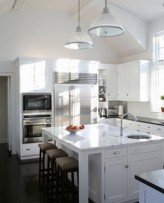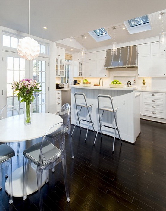 В удобной кухне важно предусмотреть сочетание рассеивающего общего, декоративного и местного функционального освещения.