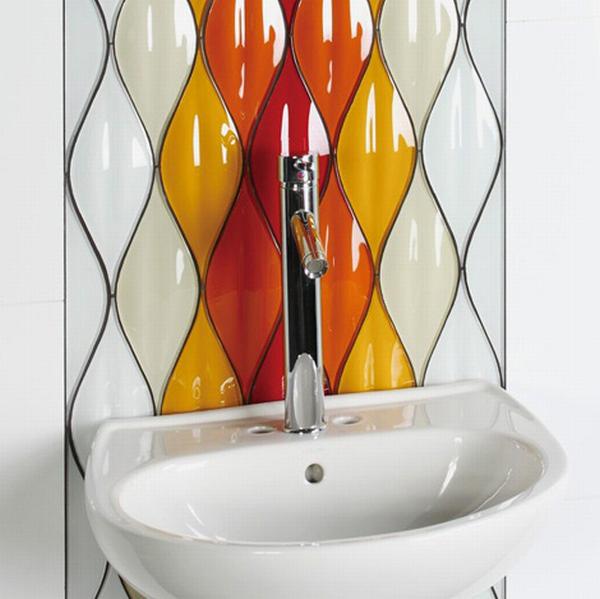 Для отделки фартука облицовывается пространство между раковиной и зеркалом либо стена до потолка комнаты.