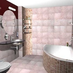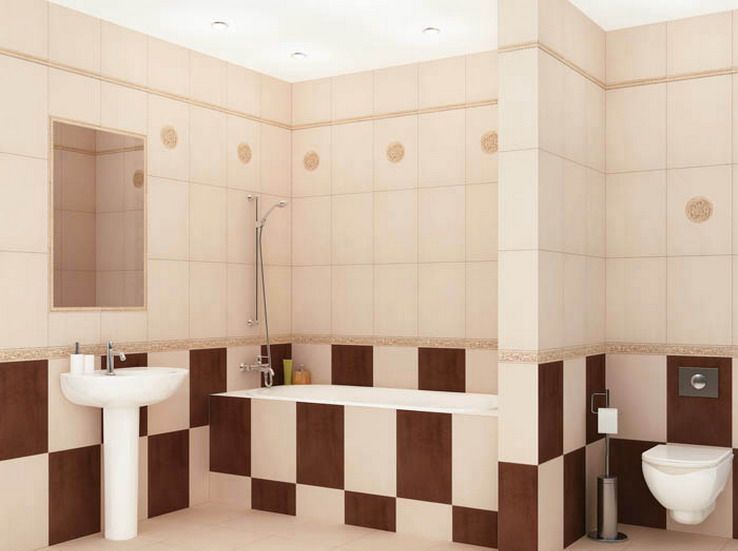 - варианты отделки ванной комнаты плиткой при комбинации бесчисленны;