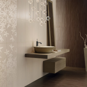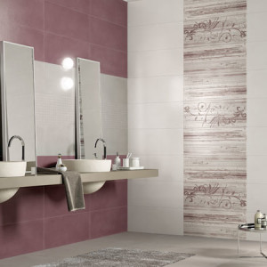 Отделка ванной комнаты керамической плиткой рельефной или текстурной эффектнее смотрится при боковом ее освещении.