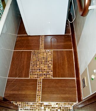 - Вставки на полу комнаты. Для отделки можно применять плитки любого дизайна. Это может быть шахматное чередование, отдельный фрагмент, мозаика или сложные варианты укладки.