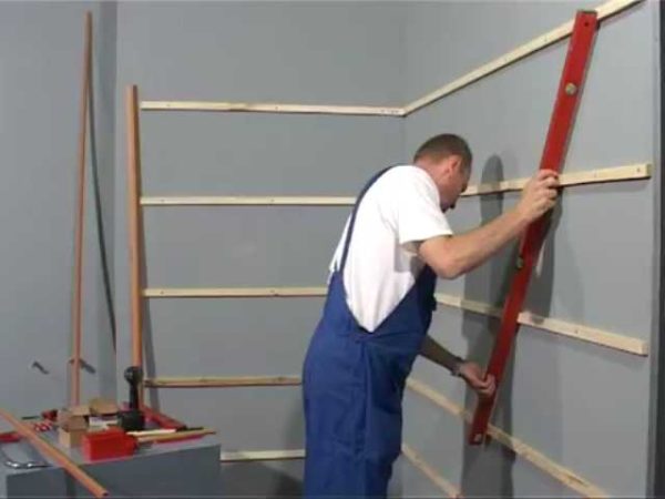 Перед началом монтажа обрешетки под ПВХ панели стены надо подготовить. Сначала снимают старую отделку и все, что может отвалиться. Если на поверхности есть большие выемки, их лучше заделать, а сильно выпирающие части можно стесать. После того как стена стала более-менее ровной, ее обрабатывают грунтовкой с антибактериальной составляющей (против грибков и плесени). После этого уже можно приступать к монтажу обрешетки.