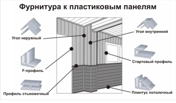 Кроме собственно стеновых пластиковых панелей в магазине вам надо будет купить еще некоторое количество фурнитуры — это угловые, стартовые и F-образные профили. Они необходимы для того чтобы придать отделке законченный и аккуратный вид.