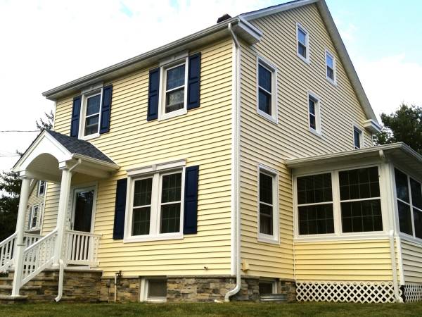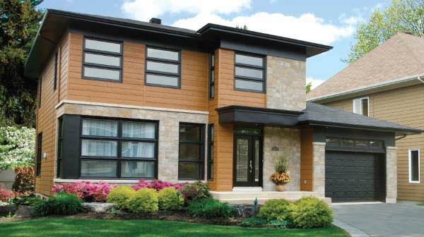 Виниловые панели для фасада почти не требует технического обслуживания и могут быть использованы для отделки всех типов домов и зданий. Это один из самых доступных вариантов на сегодняшнем рынке отделочных материалов для фасадов частных домов, который можно найти в широком диапазоне расцветок и стилей (в т.ч. под дерево, камень и т. д.). Отметим, что винил (он же ПВХ) обладает сильными изоляционными свойствами, но меньшей ударопрочностью по сравнению с деревянными и металлическими панелями для фасада. Смотрим, как выглядит такая отделка фасадов на фото.