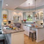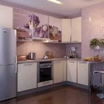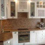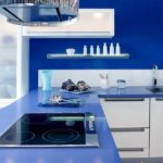 - Все стены и фартук в кухне делают одного цвета, но он не совпадает с окраской мебели (контрастный или в той же гамме).