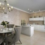 Отделка стен на кухне гладкой декоративной штукатуркой происходит после тщательного выравнивания стен. Состав очень дорогой и расходовать его на выравнивание дефектов крайне невыгодно. Кроме того малейшие неровности портят общее впечатление. Структурными декоративными штукатурками можно отделывать неидеальные стены — поверхность все равно будет неровной, так что идеальной гладкости не требуется. Что обязательно в любом случае — предварительная грунтовка для лучшего сцепления с поверхностью.