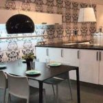 Этот вид отделочных материалов большей частью используется на стенах в обеденной зоне кухни. В рабочей области даже супер-моющиеся и супер-прочные обои долго не выдержат. Особенно в районе мойки.