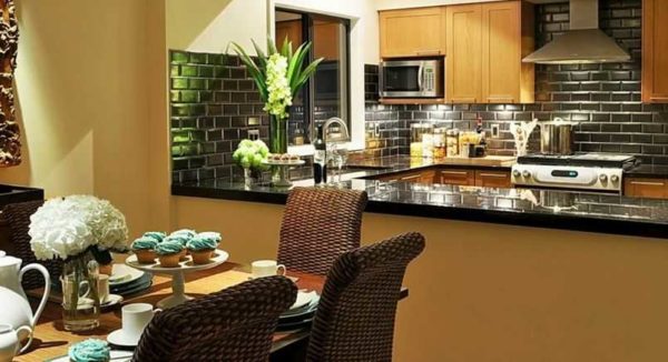 Кроме приготовления пищи в большинстве семей на кухне еще используют как столовую. А раз так, то отделка должна быть еще и красивой. Естественно, она должна быть безопасной для здоровья и, желательно, долговечной.