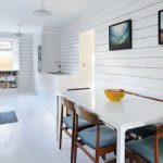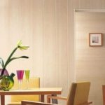 Стеновые панели из ПВХ в виде вагонки на кухне в обеденной зоне