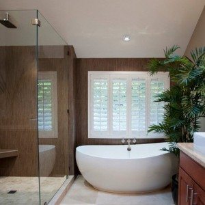 Выбрав и установив отдельно стоящую ванну, вы получите поистине изысканную реализацию стиля интерьера ванной комнаты. А для создания в ванной ощущения легкости и уюта над такой ванной можно установить балдахин с невесомым белым тюлем.