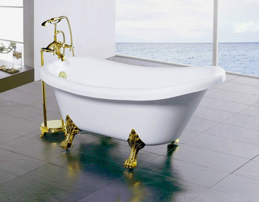 Позолоченный смеситель для отдельно стоящей ванны, подобранный под цвет ее ножек