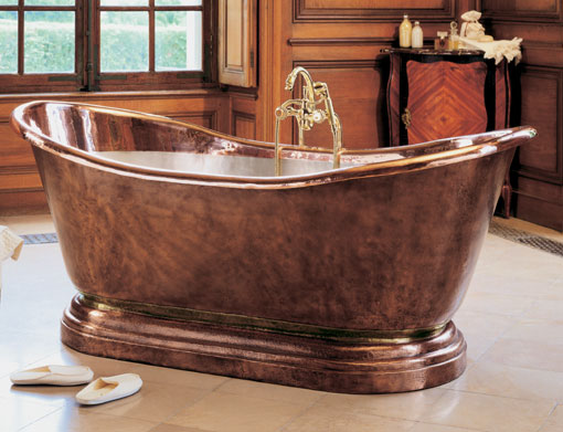Тем, кто все же сомневается в способности пола ванной комнаты выдержать изрядный вес, можно порекомендовать акриловые Медная ванна.