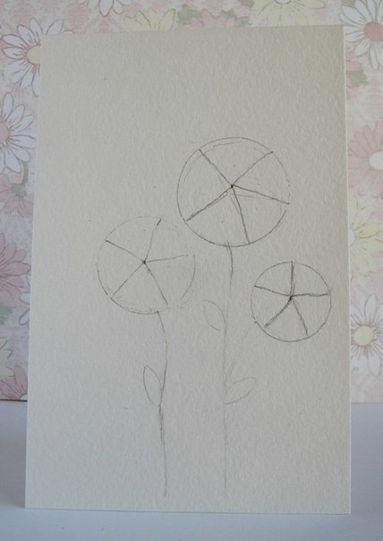 на светлом картоне делаем карандашом контуры цветов,