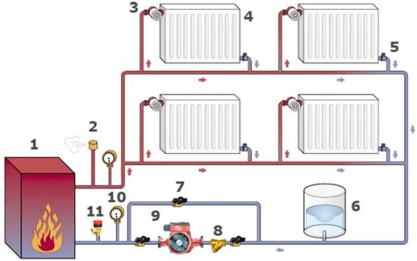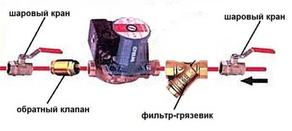 Схема подключения (обвязки) циркуляционного насоса в систему отопления закрытого типа