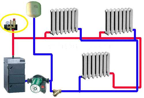 Группа безопасности котла ставится на подающем трубопроводе до первого ответвления