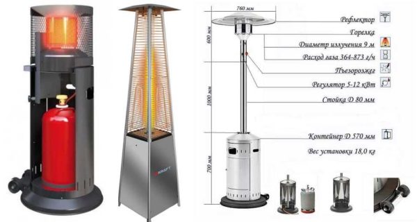 Не все ИК обогреватели работают от электричества. Есть установки, работающие на сжиженном газе. Они есть в двух модификациях — для внутреннего и наружного использования.