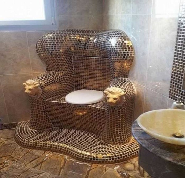 А при желании даже обычные отделочные материалы можно скомпоновать так, что получите шедевральный дизайн туалета.