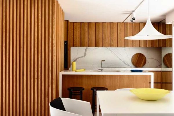 Ламинированные или шпонированные стеновые панели для внутренней отделки из ДСП неплохо смотрятся в современных интерьерах