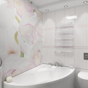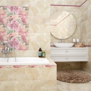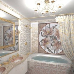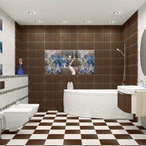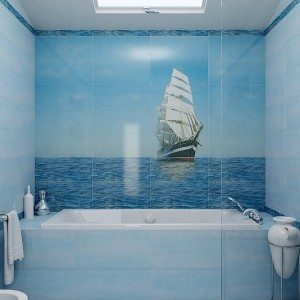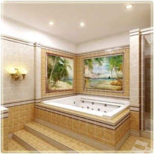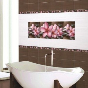 Внести разнообразие в интерьер ванной комнаты способна керамическая плитка для ванной – панно будет уместно смотреться как в интерьере большой, так и маленькой ванной комнаты.