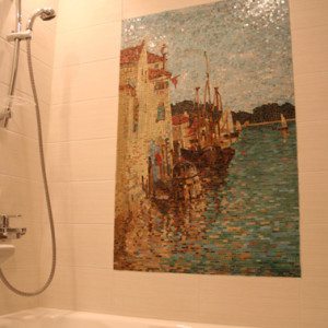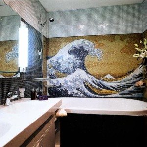 После этого эксклюзивное панно из плитки готово, причем можно быть уверенным, что подобного точно ни у кого нет. Остается только подобрать достойное место для полученного панно, поскольку оно будет главным декоративным элементом ванной комнаты.