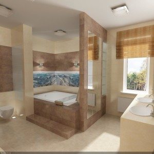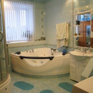 • В большом помещении можно поставить ванну любых размеров и форм. Круглую чашу лучше разместить в центре и даже на подиуме, а овальную – у стены. Наслаждение в джакузи магично и незабываемо, а установку стоит доверить специалистам.