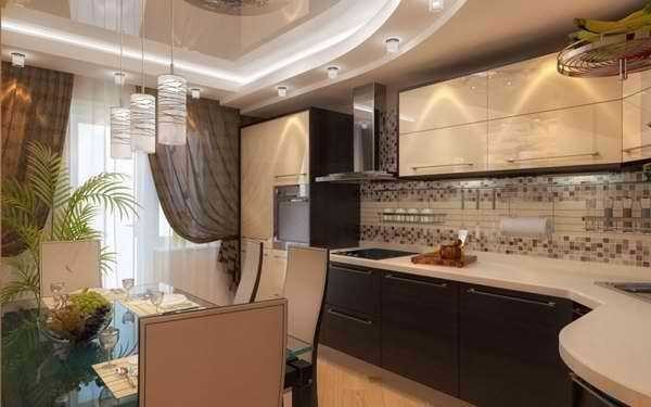 - определение с видами отделки стен, фартука для рабочей зоны, потолка;