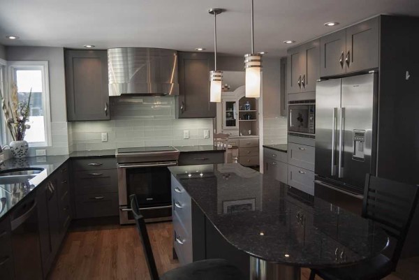 В первую очередь необходимо определиться с тем, какой вид будет иметь кухонная зона. В зависимости от геометрии помещения и размещения коммуникаций (водопровода, канализации, электророзеток) в первую очередь выбирают способ размещения шкафов, шкафчиков и техники.