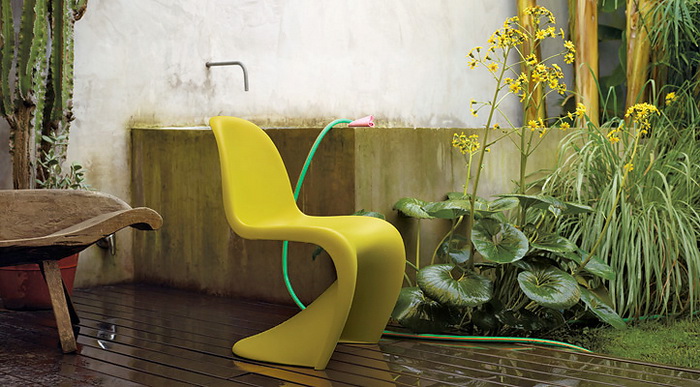 Вы можете использовать дизайнерскую пластиковую мебель дома или в саду.