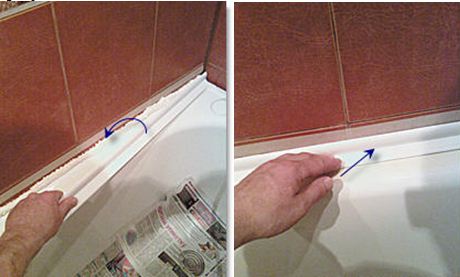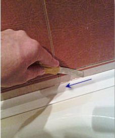- Часто бордюры пластиковые для ванной не очень плотно прилегают сверху к стене – остается небольшая щель, сквозь которую проникает влага, вызывая развитие грибка. Во избежание этого щель заделывается силиконовым герметиком или водостойкой шпатлевкой;