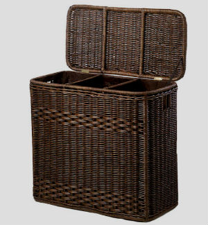 В ванную комнату обычно приобретаются прочные, влагоустойчивые плетеные изделия, достаточно глубокие и вместительные, некоторые модели поделены на специальные отсеки под различные грязные вещи: носки, белье, верхнюю одежду. В ванную комнату лучше приобретать изделия из ротанга и бамбука, они легко смогут выдержать повышенную влажность данного помещения.