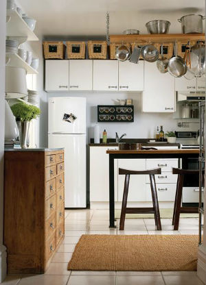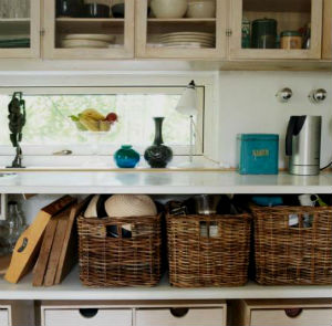 В интерьере кухни, корзины практически незаменимы, во-первых, они смотрятся по-настоящему эффектно, во-вторых, они позволяют держать вещи в порядке, в-третьих, они прекрасно вписываются в любой интерьер, но особенно гармонично смотрятся в простых провинциальных стилях: прованс, кантри, винтаж, шебби-шик.