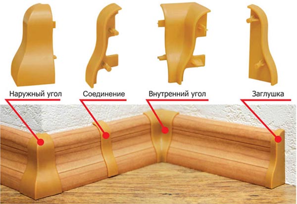 Также при установки бордюра удобно использовать уголки и заглушки, которые облегчат стыковку плинтуса и облагородят его общий внешний вид. Если после установки плинтуса образовались небольшие щели, то их необходимо залить герметиком.
