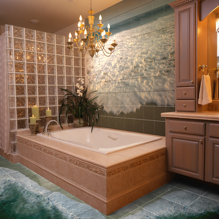 Плитка со вставками для ванной с джакузи – незабываемый дизайн