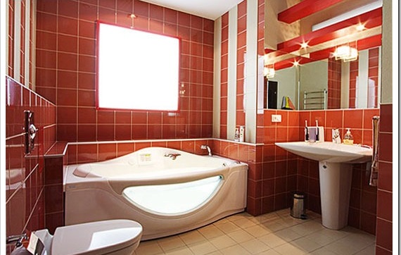 Красная плитка в большой ванной
