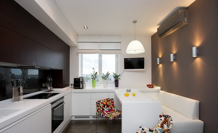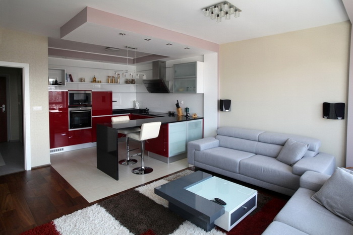 - Не к месту выпирающие несущие балки, вентиляционные короба от вытяжек можно спрятать или интересно обыграть с помощью гипсокартонных конструкций. Можно устранить практически все видимые недостатки потолка, изменить геометрию комнаты, визуально сделать её более правильной.
