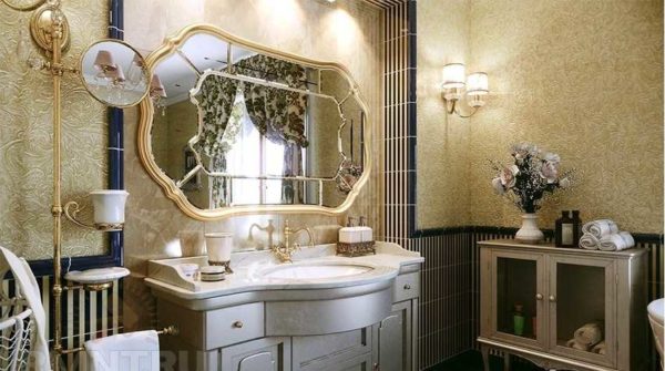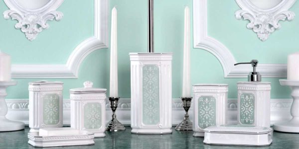 Для интерьера ванной в классическом стиле аксессуары из керамики с орнаментом