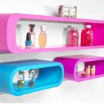 Яркие, необычной формы — пластиковые полки будут украшением ванной комнаты