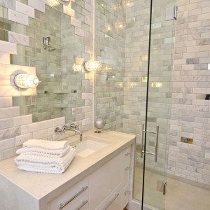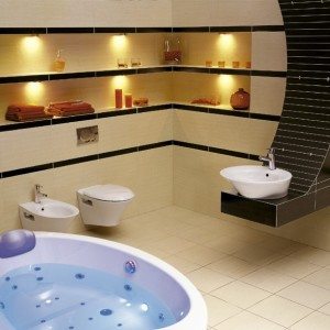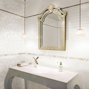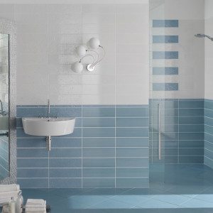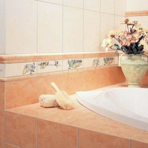 В современной дизайн-индустрии имеет место как оригинальная плитка для ванной, так и классическая. Касательно последней, здесь зачастую применим дизайн, при помощи которого производится зрительное разделение стен комнаты на горизонтальные зоны.