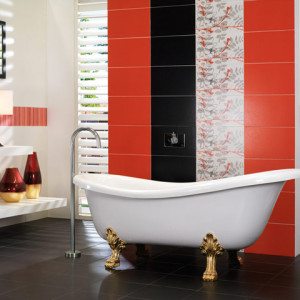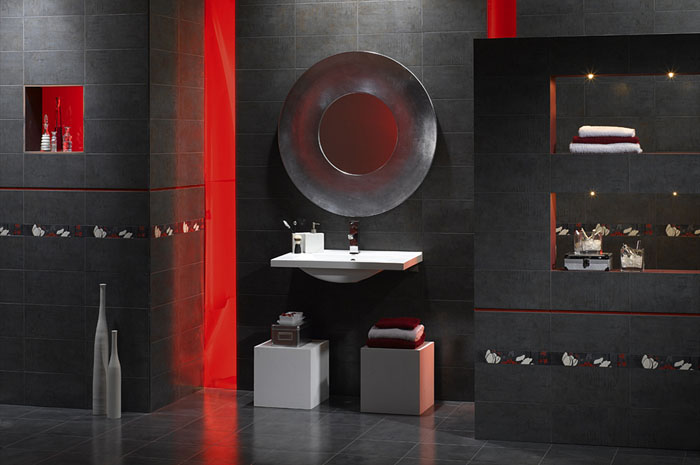 Плитка в ванную: модная и современная тенденция – сочетание черного и красного материала в стиле арт-деко
