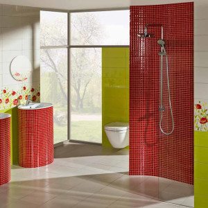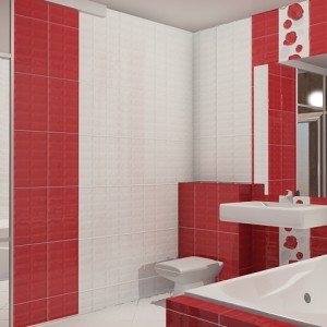 Единственное, что здесь требуется – это серьезный подход к оформлению и сочетанию цветов. Красный цвет плитки должен гармонировать с декором ванной и аксессуарами, тогда интерьер не вызовет у гостя неоднозначных эмоций.