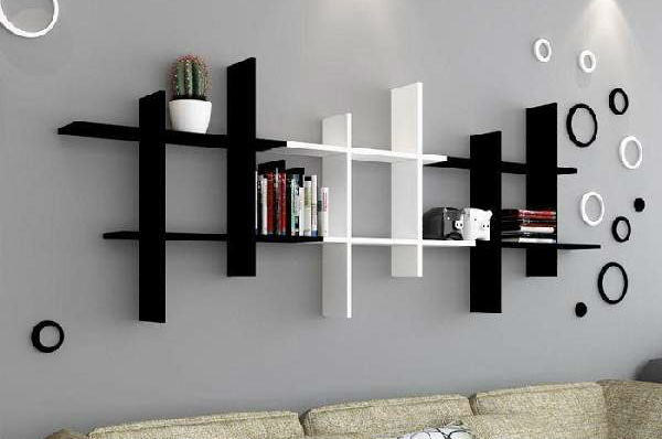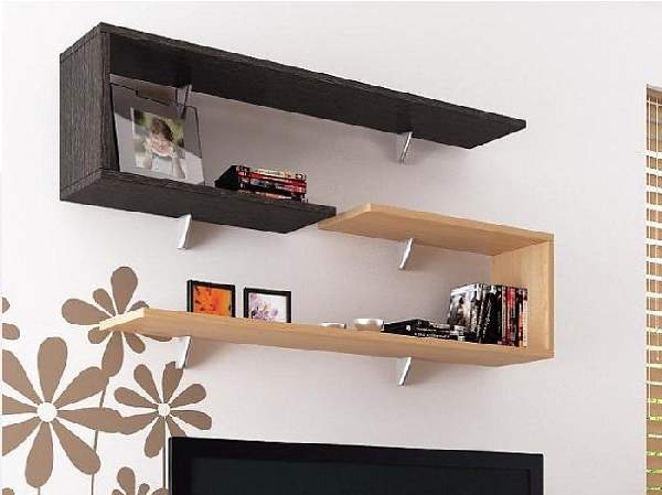 В случае, когда полка будет крепиться к стене, существует намного больше интересных дизайнерских решений. Это могут быть как линейные, так и угловые подвесные полки. Достоинство угловых подвесных полок в том, что они помогают скрыть пустующие углы, вносят в интерьер нотки гармонии и завершённости.