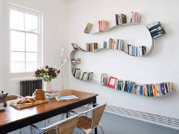 Хотя в наше время книги уже не пользуются столь большой популярностью, как несколько десятилетий назад, однако в небольшом количестве, но всё-таки имеются. Часто их используют, оформляя комнату школьника или студента. В отличие от унылых конструкций прежних лет, современные модели, а они представлены в нашей статье, отличаются особым дизайном. Размещая книга на подвесных полках, вы всегда сможете быстро и легко вашу любимую книгу. Подвесные полки для книг в гостиной помогут вам завести беседу с любым гостем и за чашечкой чая обсудить понравившуюся вам книгу.