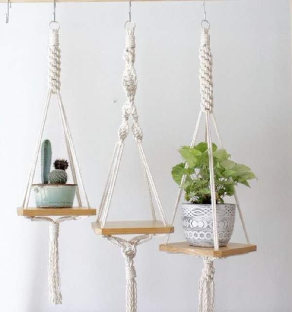 Рассмотрим интересный способ, как сделать подвесную полку-кашпо своими руками, которая станет отличным оригинальным украшением интерьера комнаты или балкона. Уточним, что кашпо — это декоративные сосуд, в который помещается вазон с растением. Такая конструкция также считается полочкой и может быть как в стационарном положении, так и в подвешенном к стене или потолку.
