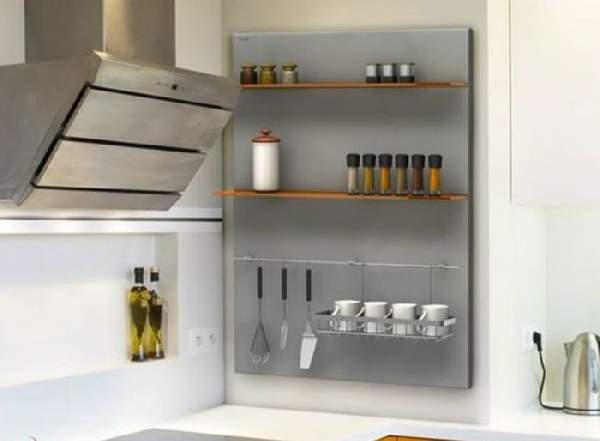 Такие помещения, как ванная комната и кухня зачастую обладают небольшими площадями, где подвесные полки становятся очень выгодным решением. Они могут нести различную функциональную нагрузку, но обязательным условием для них является устойчивость материала к влаге и перепадам температур. Преимущественно, это могут быть пластиковые, деревянные, металлические конструкции, а также подвесные стеклянные полки, сделанные из ДСП.