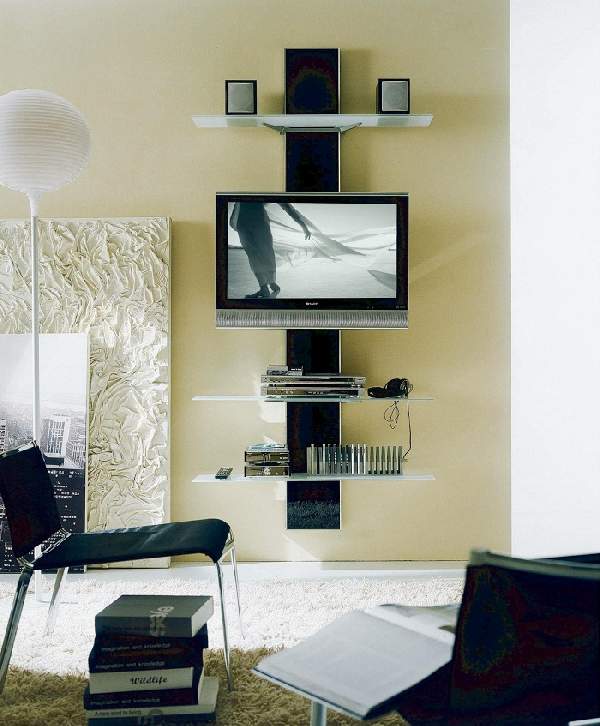 Ни одна квартира в наше время не обходится без «голубого» экрана. Подвесные полки помогут разместить его в интерьере так, чтобы просмотр был максимально комфортным и удобным для вас.