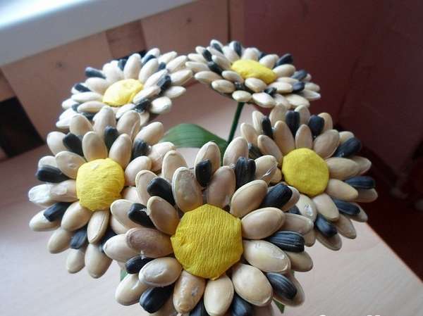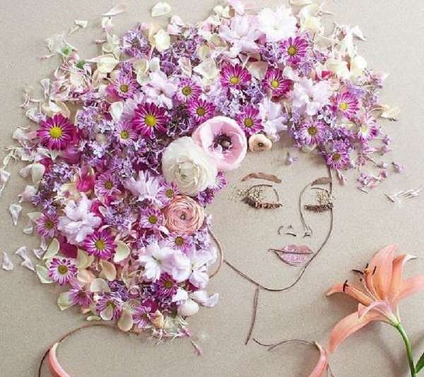 Замечательные композиции и целые игрушки создаются с использованием живых цветов. Поделки из цветов своими руками имеют разные формы. Более простой вариант, который сможет сделать ребенок младшего школьного возраста — наклеить на картон фотографию мамы, а волосы оформить бутонами маленьких цветов.