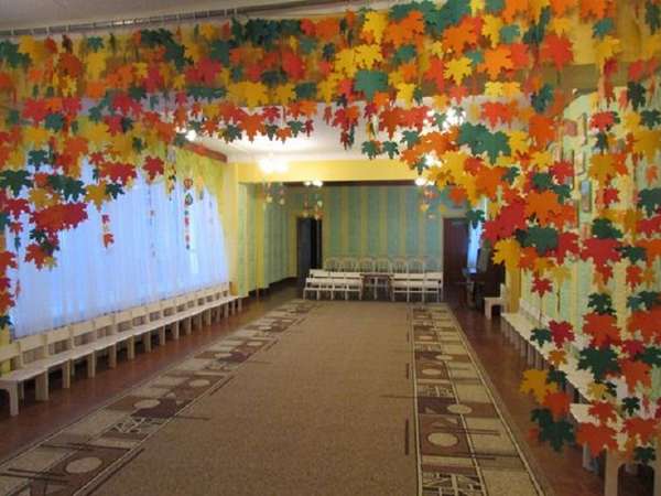 Украшая группу или зал к утреннику на День матери, поделки своими руками в детский сад могут быть довольно большими, как, например, гирлянды из разноцветных бумажных кленовых листочков. Отдельные элементы делали все дети садика, а воспитатели собрали из них очень красивые «шторки».